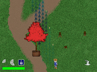 The sprites were sorted by their imaginary ground points, which allowed the birds to fly above the trees. You can visualize it like a pop-up book, where the trees are pinned to the ground by their lowest point, and so on, so that everything is sorted properly in the 2d plane. The player flashes for a brief period when he takes damage so that he doesn't appear to walk through trees. I also added shadows to the bird poop so that the player could anticipate their trajectories.
