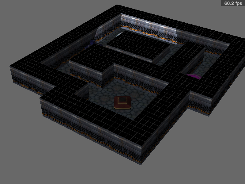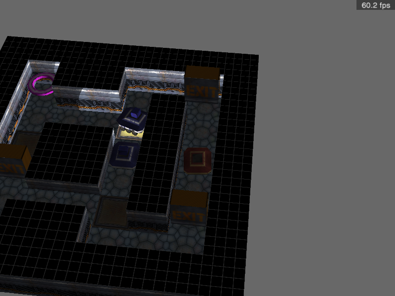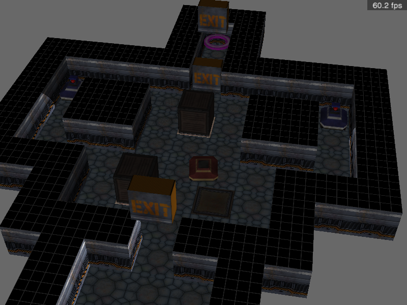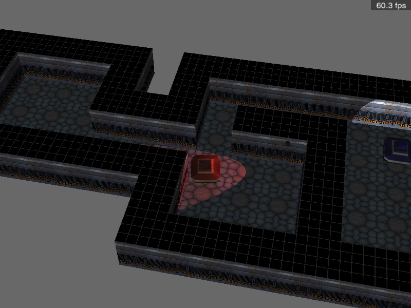 There was also a large variety of active objects implemented, which included: pushable blocks, enemies (with patrol, search, and charge AIs), floor switches (triggered by blocks, enemies, and the player), gates, security cameras (which alerted enemies of your location), and line-of-sight routines. A lot of components went into this project, and most of it came together nicely in a very short amount of time.