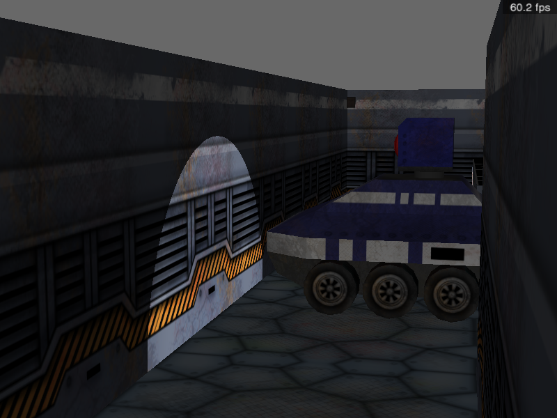 All world geometry was generated at runtime, via low-level OpenGL vertex lists. Collision objects were bound to the four sides of the generated blocks, and then the objects were placed in the world. To avoid collision stuttering at the corner seams, we used capsules, stretched to the dimensions of the wall and slightly into the center of the block. This meant that two adjacent walls had curved collision at the connecting corner, which was tangentially aligned and removed all stuttering.