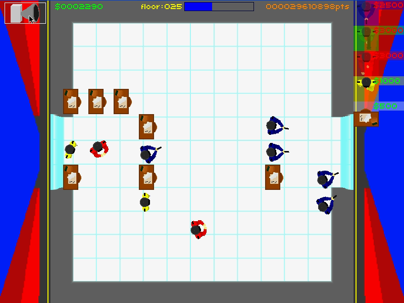 This game features a variety of tech, including rotation to face target, right-click menus, a visual effect when moving up floors of the skyscraper, and advanced targeting logic.